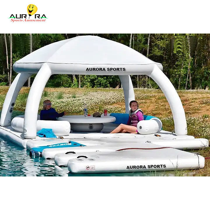 Questo...Dock galleggiante gonfiabileLa piattaforma dello yacht è dotata di tappetino, tavolo, poggiate, tenda, banchina galleggiante e così via. Sono progettate per essere facilmente collegate tra loro.Facciamo una serie di D-ring in acciaio inox 316 che permetteranno ai proprietari di collegare più zattere insiemeLe tende gonfiabili sono progettate per adattarsi a qualsiasi ponte galleggiante. Queste tende forniscono un'ottima ombra sull'acqua.Puoi pranzare sull'acqua.Inoltre, le tende galleggiano direttamente sull'acqua e possono essere utilizzate anche sulla spiaggia!
