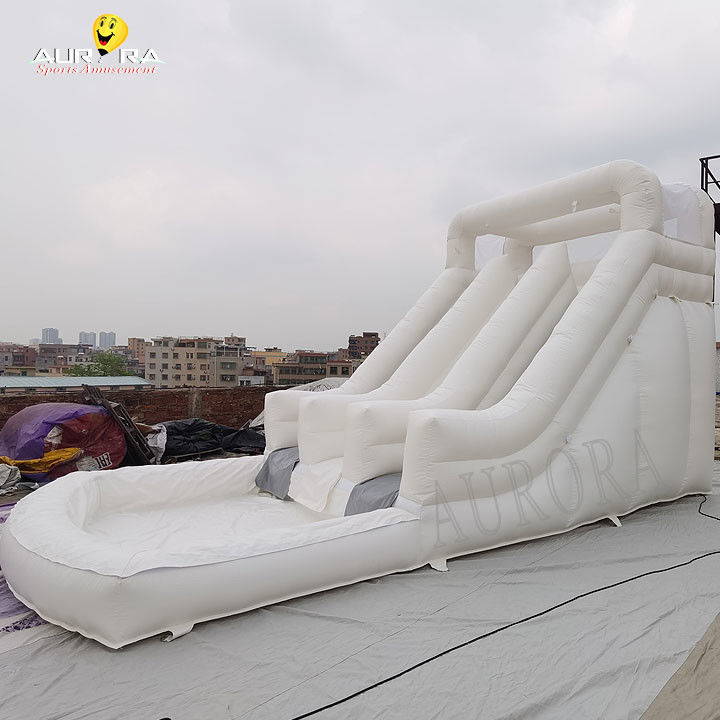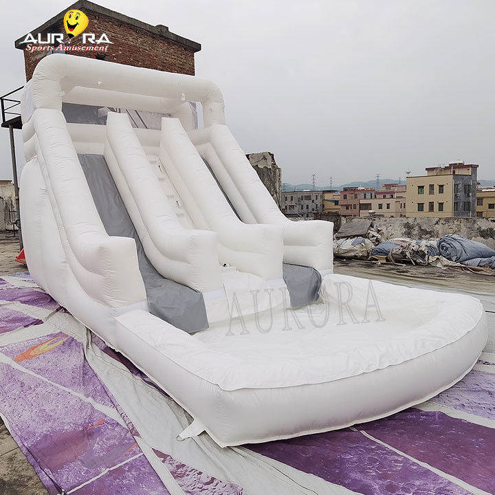 La forma e le dimensioni dello scivolo gonfiabile possono essere personalizzate in base alle esigenze del cliente.o un gruppo di scivoli composto da più scivoli di altezza e pendenza diverse.